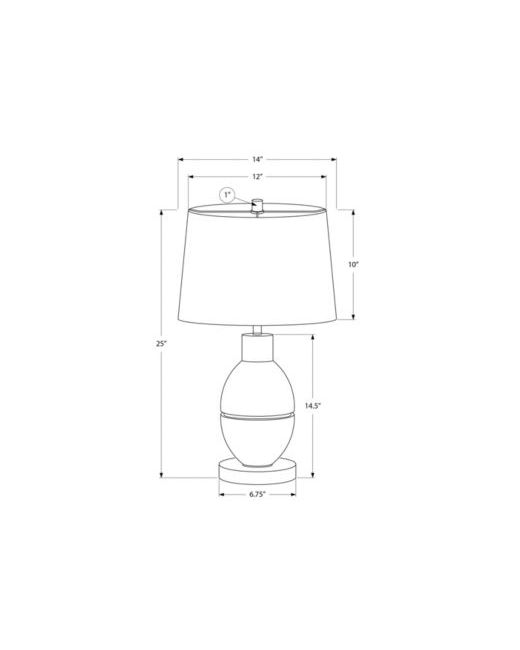 Elevate your room into a stylish haven with this 25 table lamp in a natural looking resin resting on a matching base and topped with a soft shade.