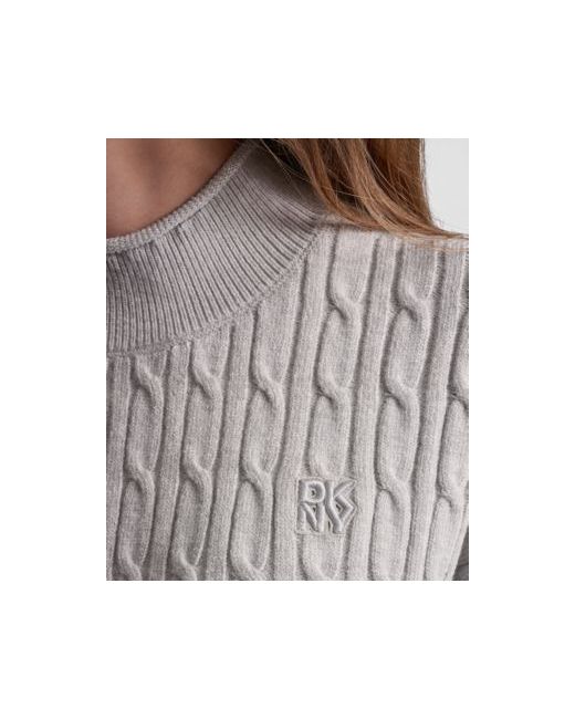 Women's Gray Mock Neck Drop Shoulder Cable Sweater Silver