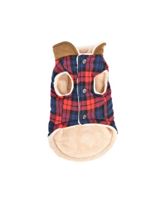Traditional warmth! The Scottish Dog Jacket in red/blue plaid features a warm fleece lining and classic tartan pattern. A stylish, cozy coat to protect your pup from the cold.