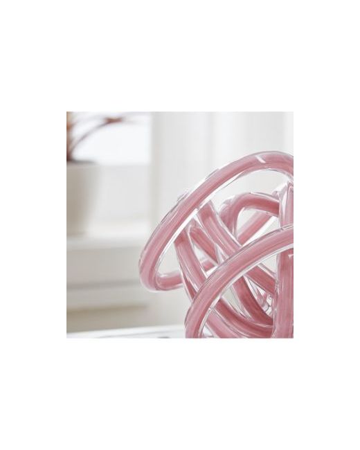 The Nox Modern Glass Knot Abstract Tabletop Sculpture presents a striking fusion of art and design. This decorative statue features a meticulously sculpted abstract knot. The overlapping, looping glass arches provide both a peaceful and striking display that draws the eye in any space. This glass statue is available in two distinct finishes, allowing you to choose the perfect style to complement your space. For those who favor bold contrasts and tactile interest, the black textured rope braid finish offers a dramatic statement with its modern details. The braids of the rope can be seen through the clear glass, visually contrasting these textures. For a softer aesthetic, the smooth light purple finish provides a sense of calm and sophistication. The dusty rose hues encased within the clear glass create an ethereal glow that embraces the flow of the sculpted loops. Whether you bring home one or both options, these sculptures are versatile enough to bring an artistic twist to every room.