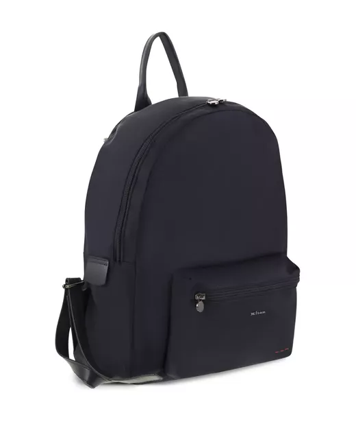 blue leather inserts adjustable shoulder straps front zipped pocket double-slider zip closure interior zipped pocket
