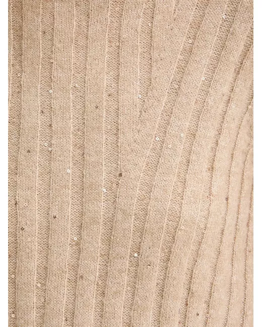 light brown ribbed knit round neck sequein embellishments long sleeves