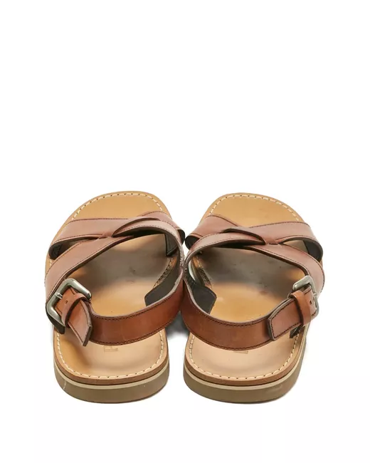 brown leather slingback strap flat soles crisscross straps buckle closure Condition: GOOD. This previously owned and used item is in good condition with minimal signs of use. This may include fading of material or plating and scratches.