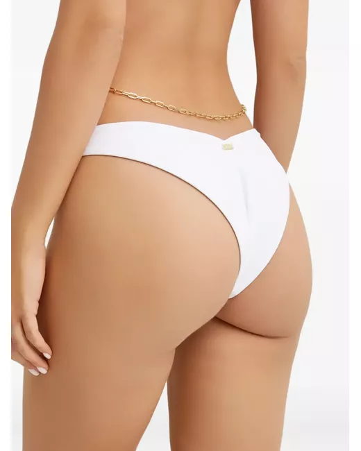 white low-rise asymmetric waist gold-tone hardware chain detail Be mindful to try on swimwear over your own garments.