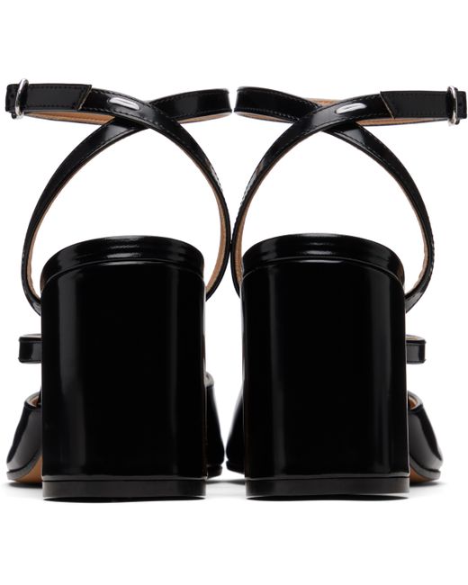 Brushed calfskin heels. · Square cleft toe · Strap at vamp · Wraparound pin-buckle ankle strap · White stitching at ankle strap · Buffed sheepskin lining · Covered cylindrical heel with rubber injection · Calfskin sole · Heel: H3.25 Supplier color: Black
