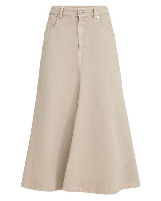 Garment-dyed five-pocket flared skirt in cotton and linen cover with monili. Zip closure with button Front pockets with watch pocket Back patch pockets Nickel-free monili decoration 60% cotton, 40% linen Made in Italy. Lsd Rtw - Brunello Cucinelli Rtw > Brunello Cucinelli > Saks Fifth Avenue. Brunello Cucinelli. Color: Beige. Size: 4.