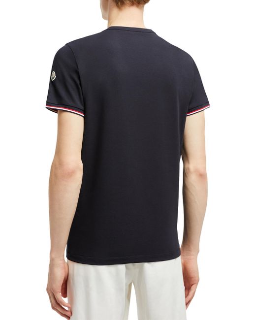 Elevating a daily staple, this cotton crew neck is adorned with a tricolor trim. Made from stretch cotton jersey Crew neck Short sleeves Tricolor trim BASE FABRIC: 92% Cotton, 8% Elastane / Spandex; Cuffs rib: 99% Cotton, 1% Elastane / Spandex Wash max 30C - Mild process; Do not bleach; Do not tumble dry; Ironing maximum temperature 110C - without steam; Dry cleaning in tetrachloroethene or with hydrocarbons - mild process; Professional wet cleaning - mild process; Flat dry in the shade; Wash separately; Wash inside out; Iron inside out; Do not iron decorations Made in Turkey. Lsd Mens - Moncler > Moncler > Saks Fifth Avenue. Moncler. Color: Night Blue. Size: Small.