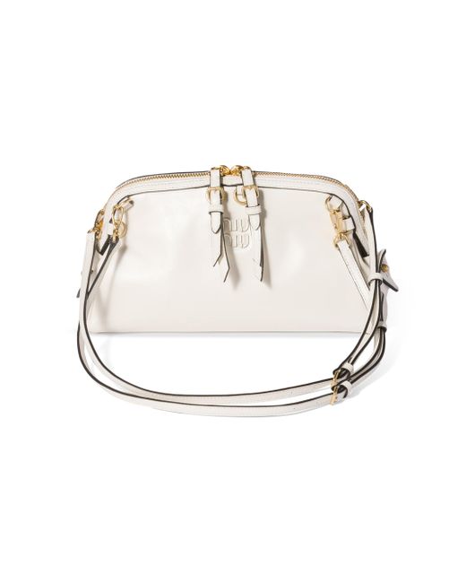 Two removable sliding leather shoulder straps Gold-tone hardware Zipper closure Cotton satin lining with patch pocket Leather lettering logo on the front Can be worn three ways: as a shoulder bag, as a clutch by removing the shoulder straps, or as a crossbody bag by joining the two shoulder straps to form one long strap Imported 100% Calf Leather 24 cm W x 14 cm H x 8.5 cm L / 9.4'' W x 5.5'' H x 3.3'' L. Lsd Handbags - Miu Miu > Miu Miu > Saks Fifth Avenue. Miu Miu. Color: White.