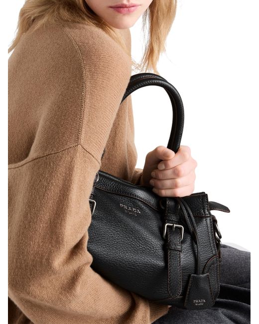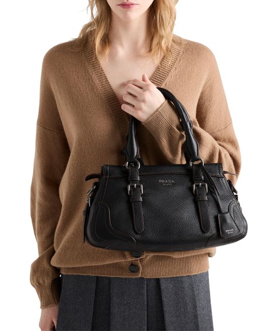 Leather handles Detachable, adjustable leather shoulder strap. Maximum length 90 cm - Minimum length: 80 cm - Maximum drop 55 cm - Minimum drop 50 cm Removable key ring Metal hardware Embossed lettering logo on the front Zipper closure Logo-print nylon lining with two pockets, including one with zipper Imported 100% Cervus Elaphus Scot 35W x 22H x 11L cm / 13.7W x 8.6H x 4.3L in. Lsd Handbags - Prada Handbags Access > Prada > Saks Fifth Avenue. Prada. Color: Black.