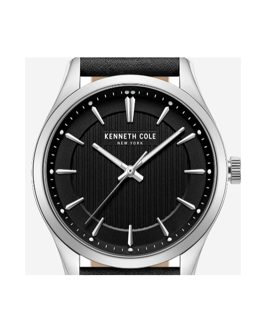 WHAT’S IN IT FOR YOU? Mechanical watch Silver tone case Black textured dial Silver-tone indexes Anti-glare crystal Black leather strap Self-winding Adjustable strap 2-year battery life 3ATM water resistance Imported | Kenneth Cole | Classic Strap Watch in SILVER