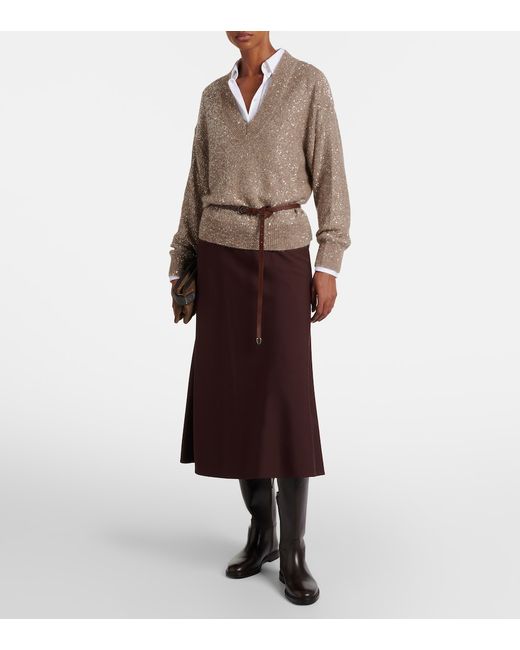 Material: 52% polyamide, 37% polyester, 11% mohair. Care instructions: hand wash. Made in Italy. Designer color name: Brown Caldo + Brown Scuro. Item color: brown. Details: 100% polyester. Collar: V-neck. Cuff: ribbed. Hem: ribbed.