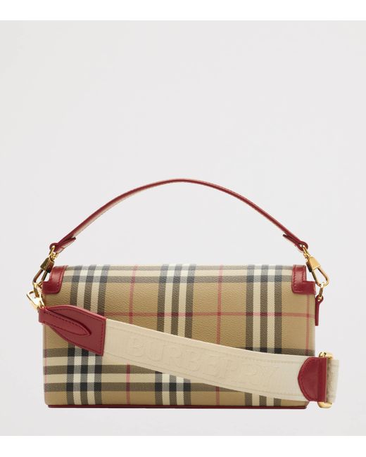 A motif found on the lining of its trench coats since the 1920s, the Burberry Check has become synonymous with the House's outerwear legacy and refinement. With the archive-inspired Note top-handle bag, the coated motif takes centre stage with smooth calfskin trims, eschewing brazen logos for an assertive hint at brand allegiance.