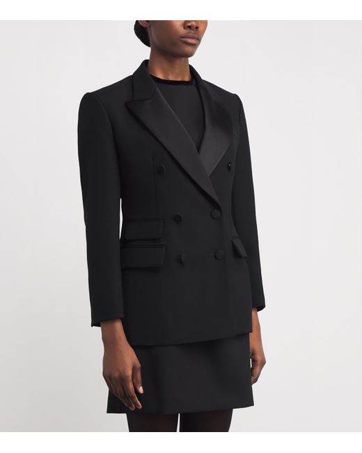 While remaining ultimately sleek, Sandro's tailoring blends the world of tradition and the contemporary. This blazer, for instance, draws inspiration from classic tuxedo jackets with its streamlined double-breasted silhouette - accented with satin peak lapels for an opulent finish perfect for after dark.