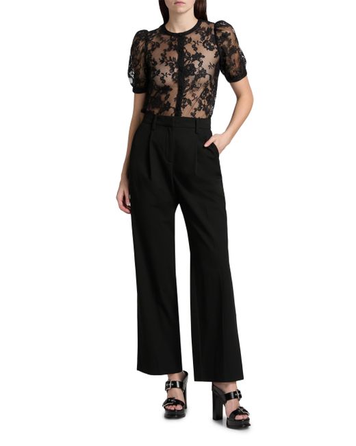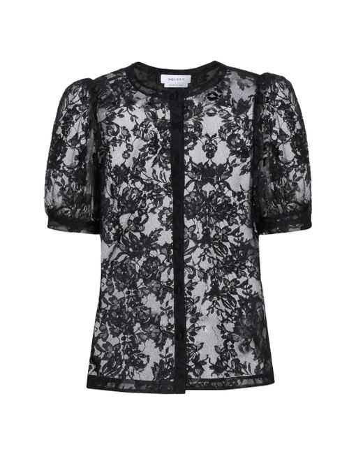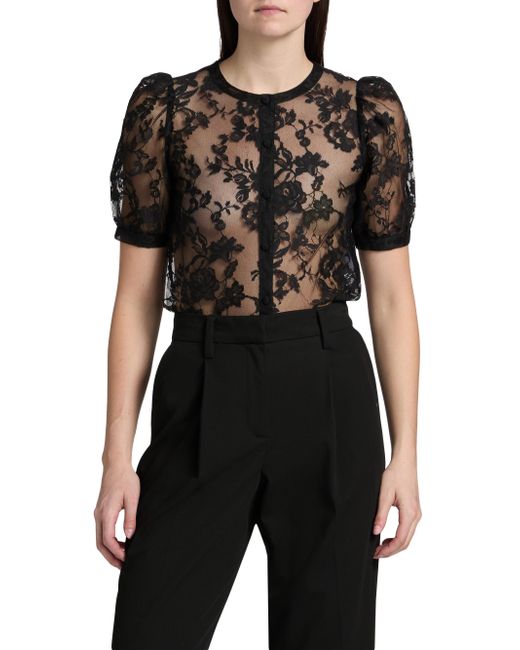 McQueen's charming lace top showcases an open, sheer design decorated with a romantic floral motif. Framed by short puff sleeves, this piece includes a round neck and button-front closure Round neck Short puff sleeves, band cuffs Button-front closure 80% cotton/20% polyamide Bind: 100% polyamide Trim: 100% silk Dry clean Made in Italy SIZE & FIT About 22" from shoulder to hem Bust: about 24" Model measurements: 5'10" tall Model is wearing a US size 4 Please Note: Compared to the Brand's Size Guide, this style measures true to size. ABOUT THE BRAND Visionary designer Lee Alexander McQueen launched his brand in 1992, which quickly became synonymous with cutting-edge, avant-garde design. Creative Director Seán McGirr has continued the designer's legacy, bringing precision craftsmanship and a feminine vision to the label's signature edge. Advanced European - Alexander Mcqueen > Mcqueen > Saks Fifth Avenue. McQueen. Color: Black. Size: 0.