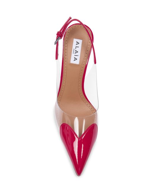 Crafted in Italy, Alaïa's 90MM pumps feature a PVC and patent leather upper with a heart-shaped detail at the toe box. The sole is a blend of leather and rubber, ensuring a sturdy and durable finish. Point toe Buckle closure PVC/patent leather upper Leather lining Leather/rubber sole Made in Italy SIZE Heel: about 3.5" (90mm) ABOUT THE BRAND A trained sculptor, Tunisian designer Azzedine Alaïa presented his first collection in 1981 after years of creating for others. Revered for his impeccable craftsmanship and signature fit-and-flare dresses, Alaïa's goal was to make women feel their best. With Pieter Mulier now at the helm, the label's precision is exemplified by timeless ready-to-wear and laser-cut accessories. Women's Shoes - Advanced Women's Designe > Alaïa > Saks Fifth Avenue. Alaïa. Color: Framboise. Size: 9.