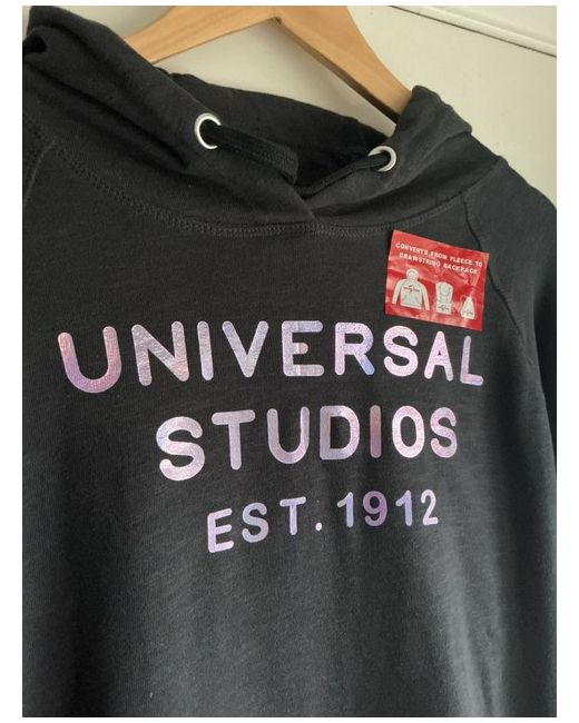 UNIVERSAL STUDIOS LOGO HOODIE OFFICIAL UNIVERSAL STUDIOS MERCHANDISE REALLY COOL HOODIE, FOLDS INTO A DRAWSTRING BACKPACK, REALLY INNOVATIVE & USEFUL DESIGN ELASTIC RIB CUFF & HEM METALLIC LOGO PRINT ON FRONT POUCH POCKET SIZE XL *WOMENS* (approx 16-18) **Please use measurements below to give an idea of fit by comparing with your existing clothes** BRAND NEW PIT TO PIT = 24.5” PIT TO CUFF = 23“ NECK TO HEM = 29” BOUGHT IN UNIVERSAL STUDIOS FLORIDA