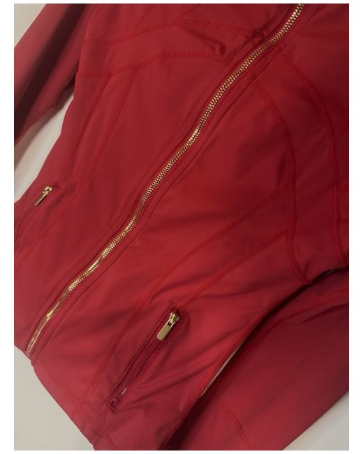 The Lululemon Define Jacket is a versatile activewear piece perfect for spring seasons. Made from a blend of nylon and polyester with a zip closure, this long-sleeved jacket in a vibrant red colour is machine washable for easy care. Designed for women who enjoy yoga and other sports activities, this basic jacket from the Lululemon Define product line offers both style and functionality. The durable outer shell and insulation material ensure that you stay comfortable and stylish while staying active.