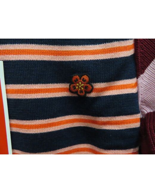 This Kenzo wool striped knit top in size small is a stylish and versatile addition to any woman's wardrobe. The tight-knit fabric in multicoloured stripes features the iconic Kenzo logo accent, making it a fashionable choice for casual occasions. With a comfortable round neck and long sleeves, this pullover jumper is perfect for autumn and winter seasons, adding a touch of luxury to your everyday look. Made from high-quality wool, this top is machine washable for easy care and maintenance.