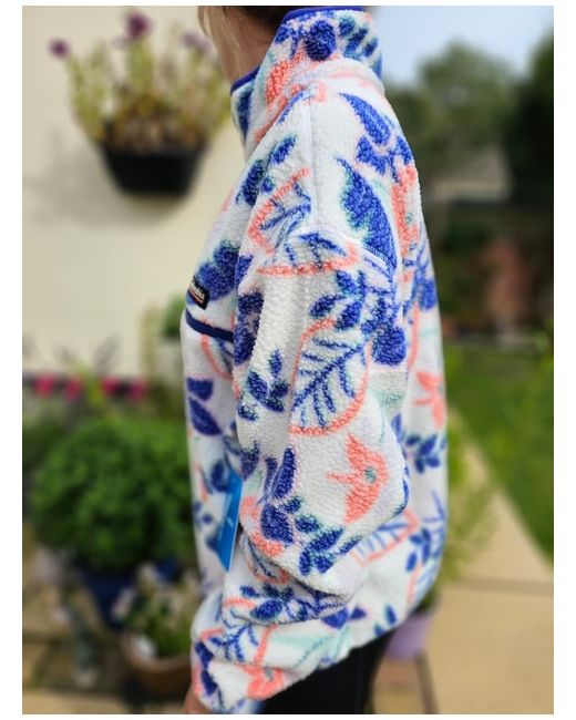 Gorgeous Columbia cropped fleece jumper with snap buttons, a handy zip pocket, and a pull cord in the hem. 🧍🧍 Model: Model is a size 10 wearing an LG jumper. 📏 Size: S/Small (Oversize fit so will fit an M/10 fine too) (Pit to pit - 22.5' / Collar to hem - 23' / Collar to cuff - 30') - Cropped.