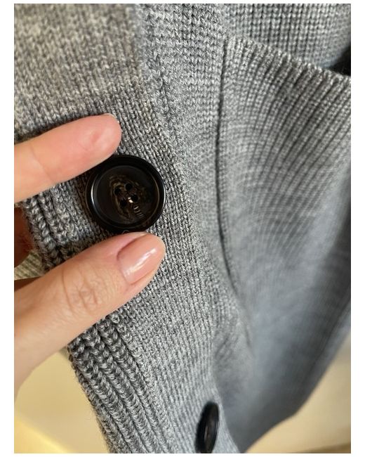 Made from a high-quality wool blend, this cardigan features a V-neckline and long sleeves, providing both comfort and warmth. The grey colour adds a classic touch to the knit fabric, making it a wardrobe essential for any woman looking for a chic and sustainable piece.