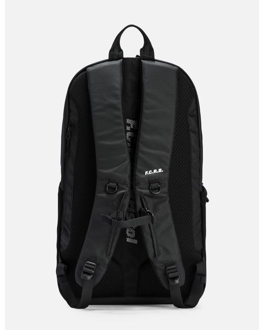 F.C. Real BristoEssential BackpackCity-use backpackCarbonated and polyurethane-coated constructionZippe closuresTop zipper pocketFront opening compartmentMain compartment with 15" laptop sleeveSide opening back pocketAdjustable chest stripPadded shoulder strapsTwo side pocketsMesh back padding with logo printCapacity: 18LColor: Black