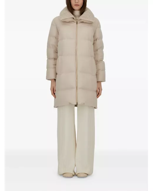 beige quilted knitted collar two-way zip fastening long sleeves side welt pockets