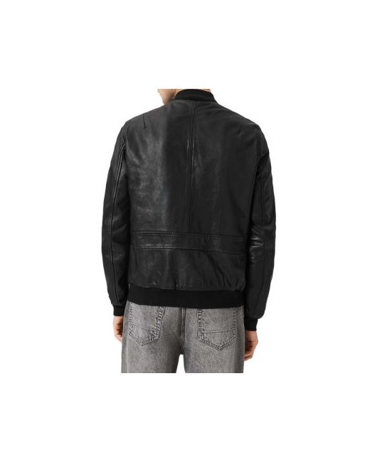 Allsaints Men's Morten Leather Bomber Jacket.Color:Black.Size:XS.Material:Shell: 100% leather; lining: 100% polyester; rib: 97% cotton/3% elastane.Jackets.