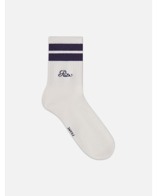 Keep it cohesive, from head-to-toe. The women's sock has an embroidered Ritz logo and navy stripe that add a chic finishing touch to weekday workouts and weekend athleisure. FRAME Ritz Striped Athletic Sock White Cotton