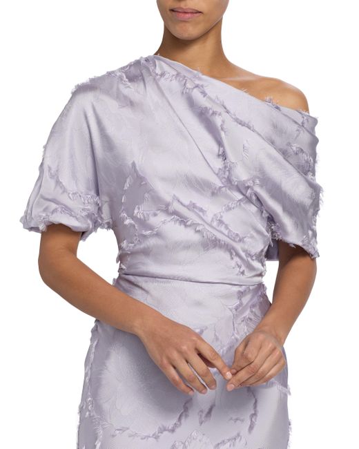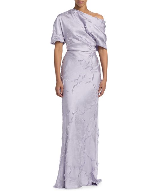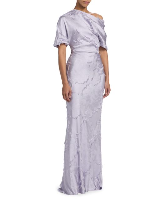 This Amsale gown is crafted of lustrous satin and styled with a one-shoulder neckline. One-shoulder neckline Short sleeves Back zip closure 80% viscose/20% polyester Lining: 100% polyester Dry clean Imported of French fabric SIZE & FIT About 62" from shoulder to hem Model measurements: 5'10" tall Model is wearing a US size 4 ABOUT THE BRAND Often recognized as the inventor of the modern wedding dress, Amsale is synonymous with the elegance of today. Founder and designer Amsale Aberra was born in Ethiopia, went on to graduate from FIT and began her career in her family's garment business. Veering toward the classic and away from trends, the brand has evolved to deliver timeless and impeccable gowns for the most memorable occasions. Dress Collections - Modern Evening > Amsale > Saks Fifth Avenue. Amsale. Color: Lilac. Size: 2.