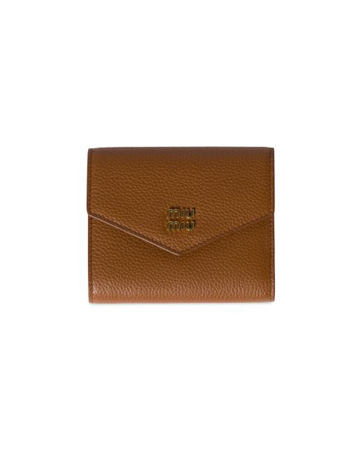 One bill compartment Three card slots Two internal pockets Snap closure Internal coin pocket with flap Moiré lining Metal lettering logo Imported 100% Calf Leather 11.2W x 9H cm / 4.4W x 3.5H in. Lsd Handbags - Miu Miu > Miu Miu > Saks Fifth Avenue. Miu Miu. Color: Brown.