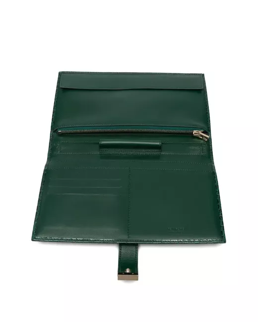 emerald green croc effect detachable strap gold-tone hardware card slots