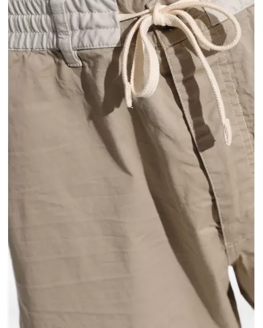 light brown contrasting waistband straight design side slip pockets back patch pocket drawstring fastening