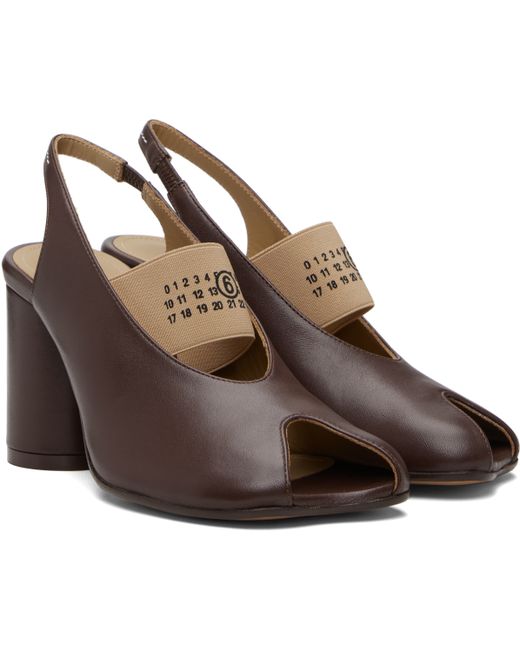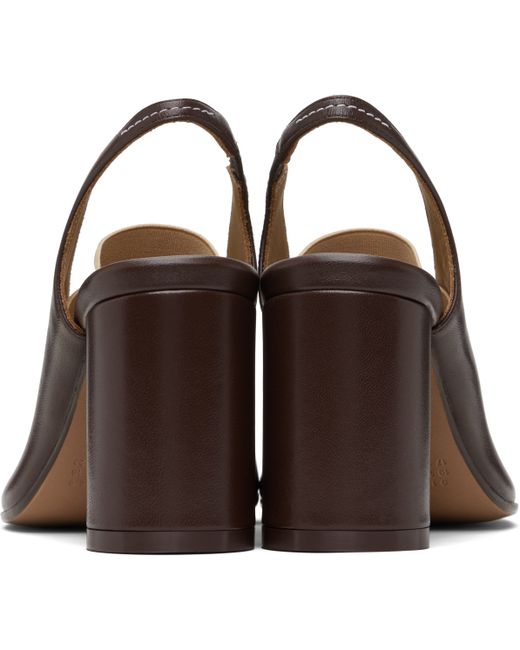Buffed sheepskin heels. · Modified open square toe · Logo-printed elasticized strap at vamp · Partially elasticized slingback strap · Signature white stitching at slingback strap · Buffed calfskin lining · Covered cylindrical heel with rubber injection · Calfskin sole · Heel: H3.25 Supplier color: Fudgesickle