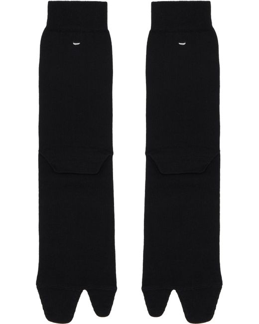 Pair of rib-knit cotton-blend jersey socks. · Calf-high · White stitching at collar · Cleft toe Supplier color: Black