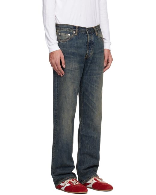 Washed non-stretch recycled cotton-blend denim jeans. · Fading and whiskering throughout · Bootcut · Low-rise · Belt loops · Five-pocket styling · Button fly · Logo patch at back waistband · Logo-engraved silver-tone hardware · Contrast stitching in tan Supplier color: Streaky Blue Dirty