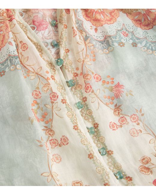 Zimmermann continues to define the art of effortless summer dressing with a piece perfectly attuned to the season. The Daylight blouse, part of the brand's coveted Spring/Summer 2026 Resort Swim collection, presents a vintage-inspired floral wallpaper print and intricate, considered details. Scalloped hems and rouleau buttons lend subtle texture and visual intrigue, elevating this design into a statement of refined femininity and effortless chic.