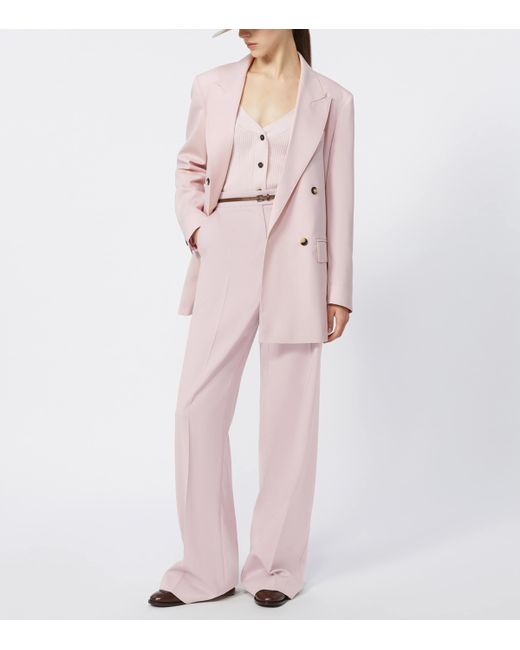 For a polished finish to your workwear edit, turn to Max Mara. These tailored trousers reflect the House's ready-to-wear mastery, demonstrating impeccable Italian craftsmanship and a flair for understated elegance. Cut from a sumptuous wool-silk blend into a wide-leg silhouette, the understated pair features classic sartorial details while its fabrication ensures graceful movement and lasting warmth.