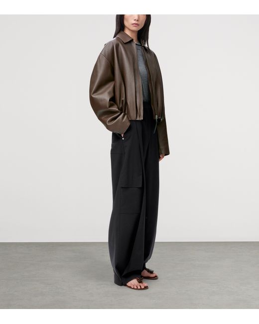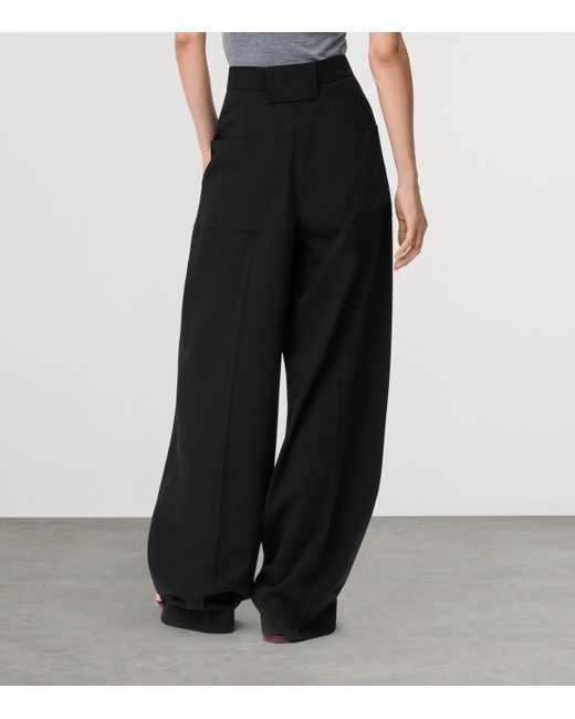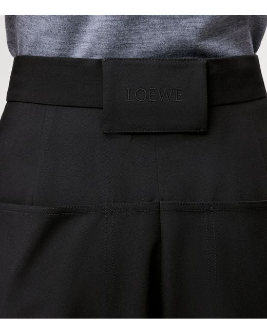 For a more unconventional approach to tailored trousers, consider this innovative pair from loewe. Merging the codes of oversized suiting with the utilitarian appeal of cargo trousers, they feature voluminous legs in muted, fluid wool-blend fabric, shifting the focus to the silver tone rivets and patch pocket construction.