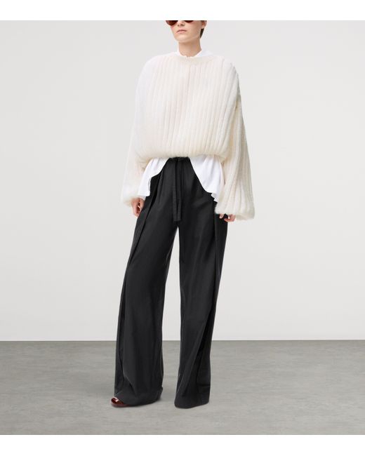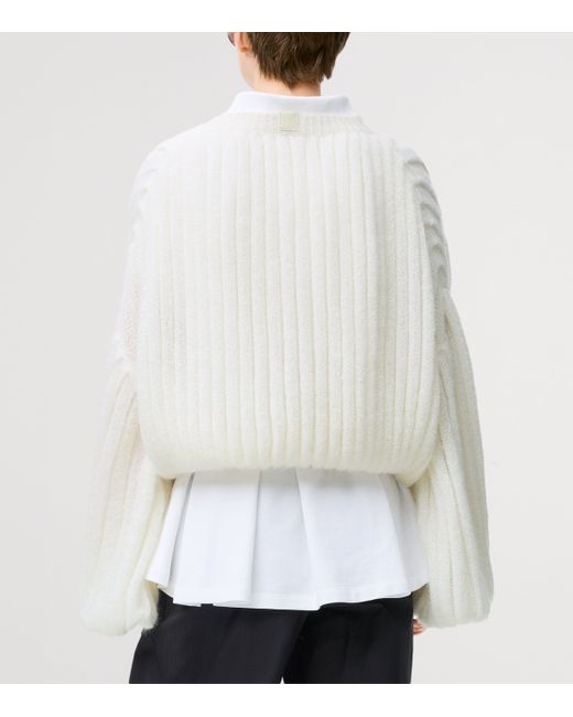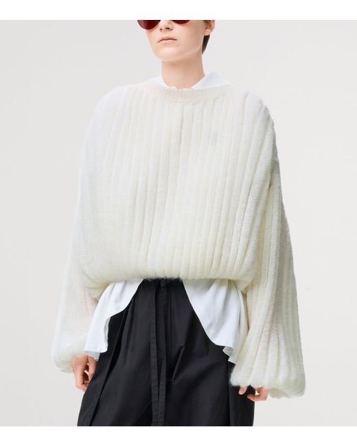 Balloon silhouettes can be frequently spotted through loewe's collections, exhibiting the House's penchant for playful, exaggerated shapes and a relaxed sensibility. This is referenced via this sweater, with its soft, mohair-rich blend cut with statement sleeves and a dropped-shoulder frame that issues effortless appeal.