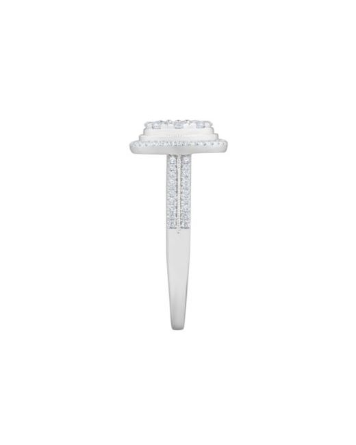Presenting a beautiful halo design, this Macy's diamond ring captures light with its full cut round stones. Set in 10k white gold, it provides a delicate and refined sparkle.
