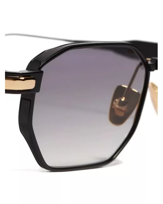 black gold-tone hardware geometric frame tinted lenses nose pads straight arms These glasses come with a protective case.