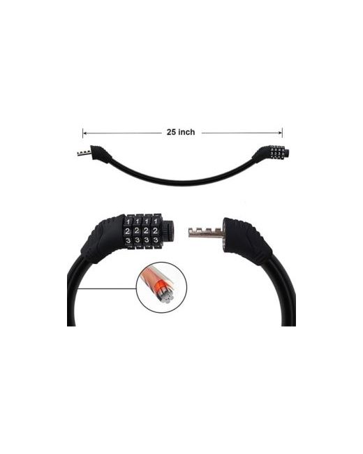 This durable 4-digit combination lock features a high-strength engineering plastic shell and a flexible 2-foot steel cable with Pvc coating for cut resistance and scratch protection. Offering keyless convenience, it comes preset to 0000 but allows users to reset to any personalized combination (must be remembered as the lock doesn't restore defaults). Ideal for securing bicycles, skateboards, tools, fences and sports equipment, its compact design balances security with portability. The manufacturer provides dedicated customer support for any inquiries.
