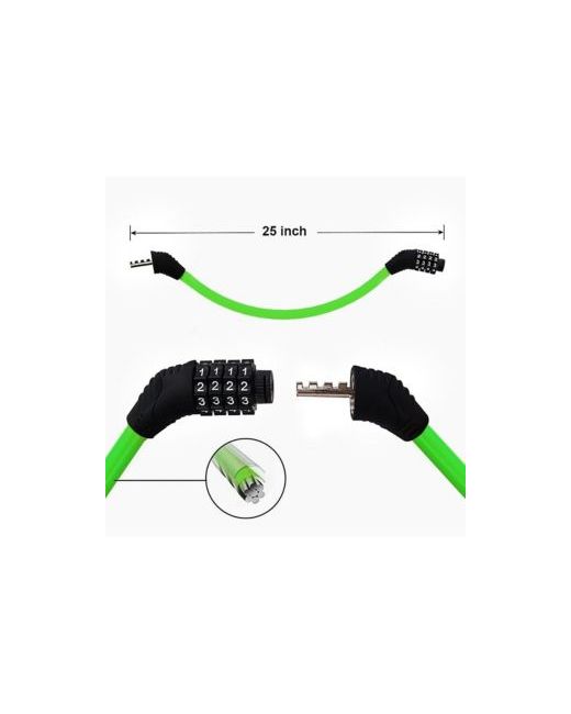 Green Bike Lock with 4-Digit Adjustable Combination Cable 2Ft x 1/2 Inch