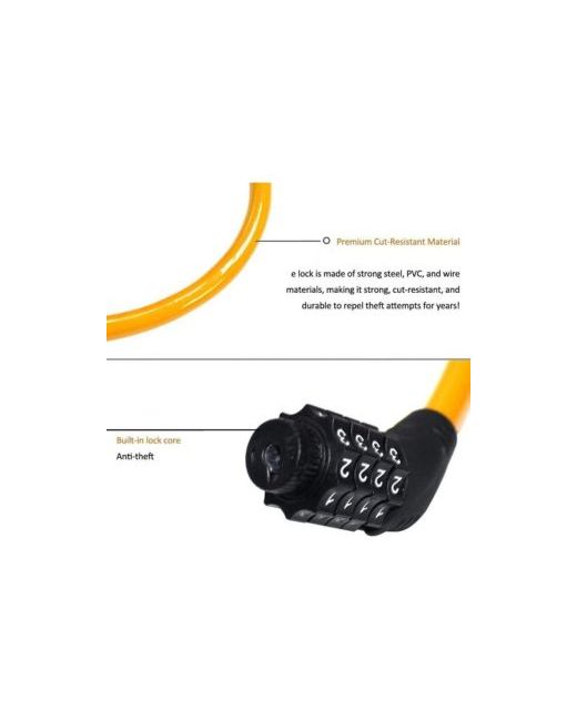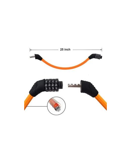 Orange Bike Lock with 4-Digit Adjustable Combination Cable 2Ft x 1/2 Inch