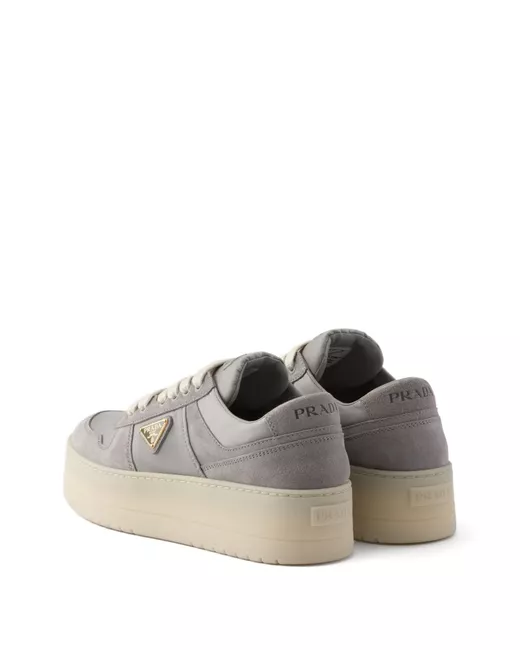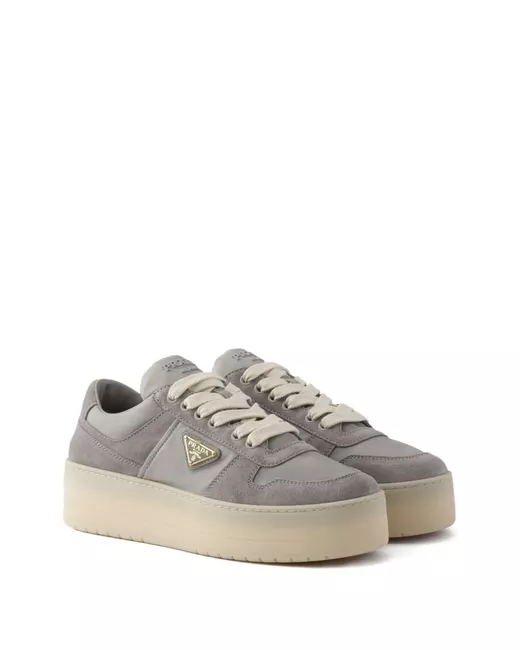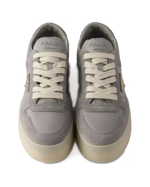 grey suede panelling enamel triangle logo lace-up fastening rubber sole