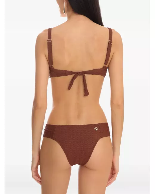 brown textured finish adjustable straps logo detail self-tie fastening Be mindful to try on swimwear over your own garments.