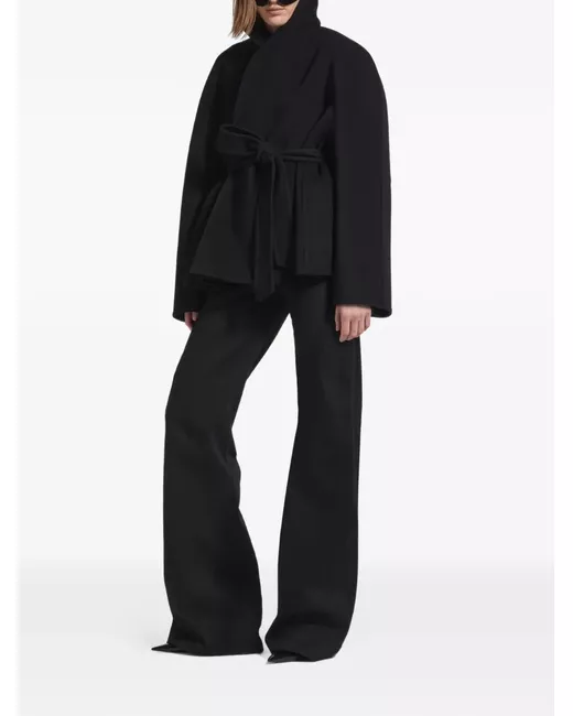 black shawl collar tie belt wide sleeves short length overlay detail