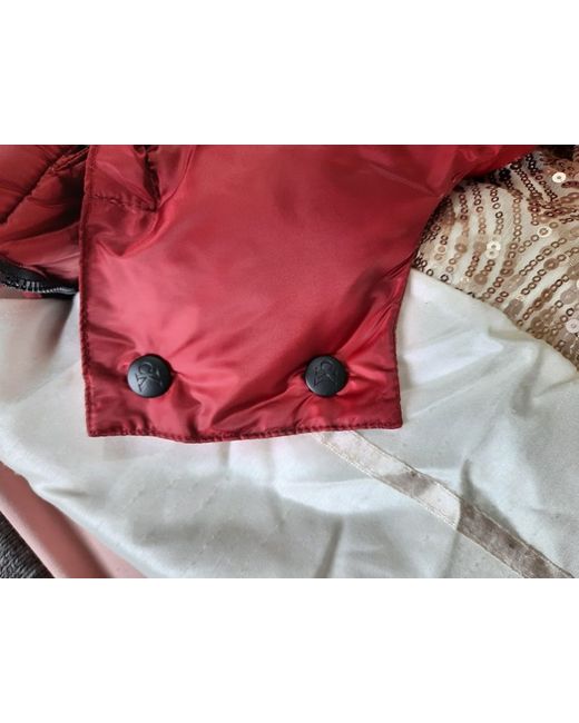 stunning calvin klein puffer coat in red (deeper red that the photos show, more of a burgundy) size medium would fit a 6-10, im a size 6 fits me but with plenty of room but because of the style it doesn't "look" big. detachable hood, 2 warm lined pockets. I removed the tags but never got round to wearing it been stored in the wardrobe ever since, from what I can gather this colour way isn't available to buy anymore. Any questions please ask. also listed on vestiairecollective.com