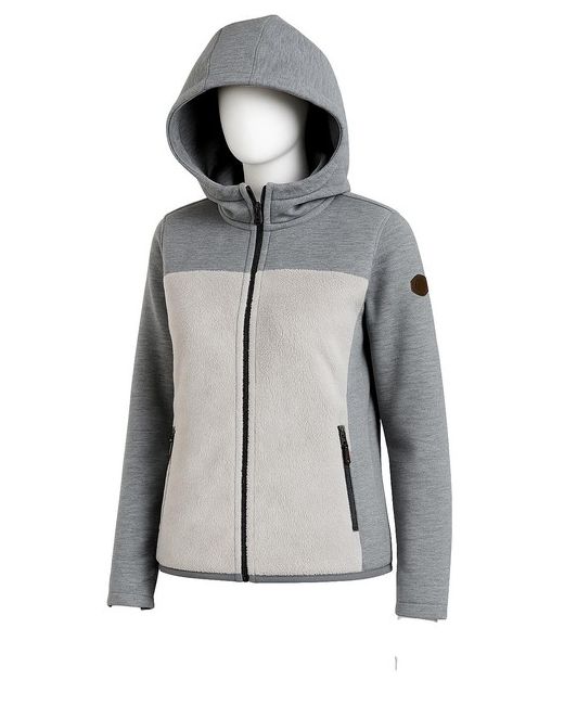 Lightweight midlayer suitable for skiing and outdoor use. The lightweight thermal material provides pleasant warmth. Fleece Lined. Color: Light Grey. With fitted hood. Material: 100% polyester. Full length front zip.
