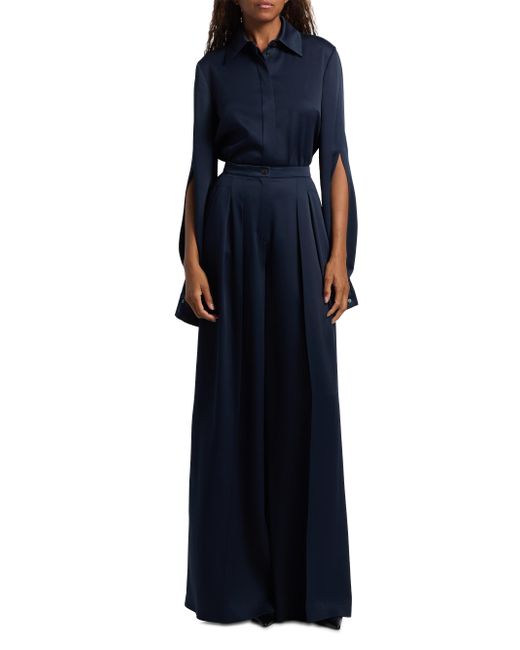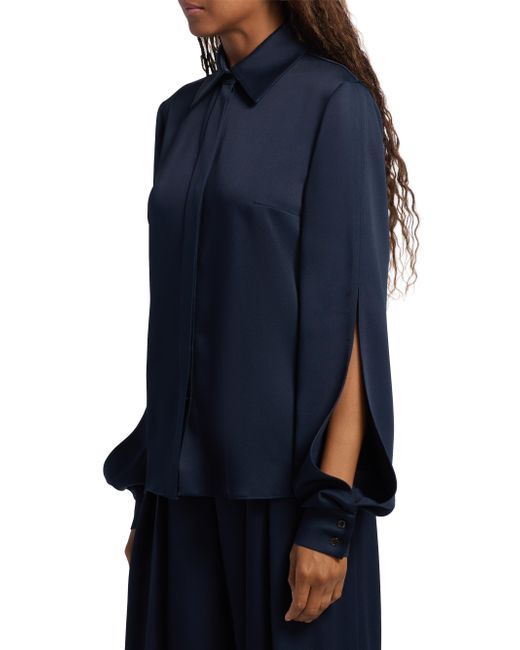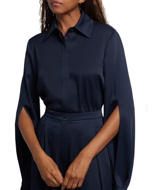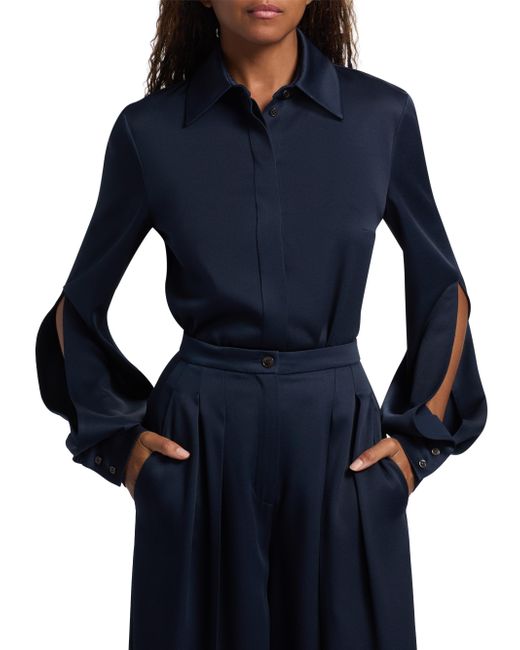 Made in Italy, this shirt from Michael Kors Collection is crafted of soft satin and styled with long split cape sleeves. Point collar Long cape sleeves, button cuffs Concealed cutton-front closure 69% acetate/31% viscose Dry clean Made in Italy SIZE & FIT Model measurements: 5'10" tall Model is wearing a US size 4 ABOUT THE BRAND Since launching his eponymous brand in 1981, Michael Kors has been taking the fashion world by storm with his luxury accessories and ready-to-wear. With multiple labels under his name, Kors' designs remain glamorous and effortless-and now include jewelry, handbags, shoes and eyewear. Designer Lifestyle - Michael Kors > Michael Kors Collection > Saks Fifth Avenue. Michael Kors Collection. Color: Midnight. Size: 2.